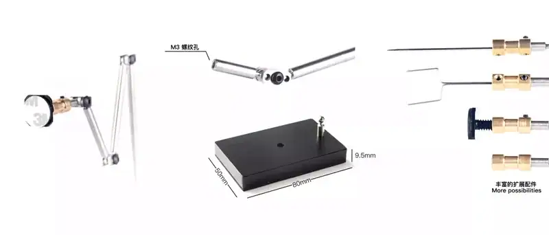 rigR1支架Professional animation tools Rig作为入门款定格动画支架之一, R1支架的球头杆支架尺寸比其他三款要短,但是支撑紧固度都是一样的。材质:不锈钢 铁球形支架长度:约175mm金属底座尺寸:50mm*80mm*10mm 购买链接